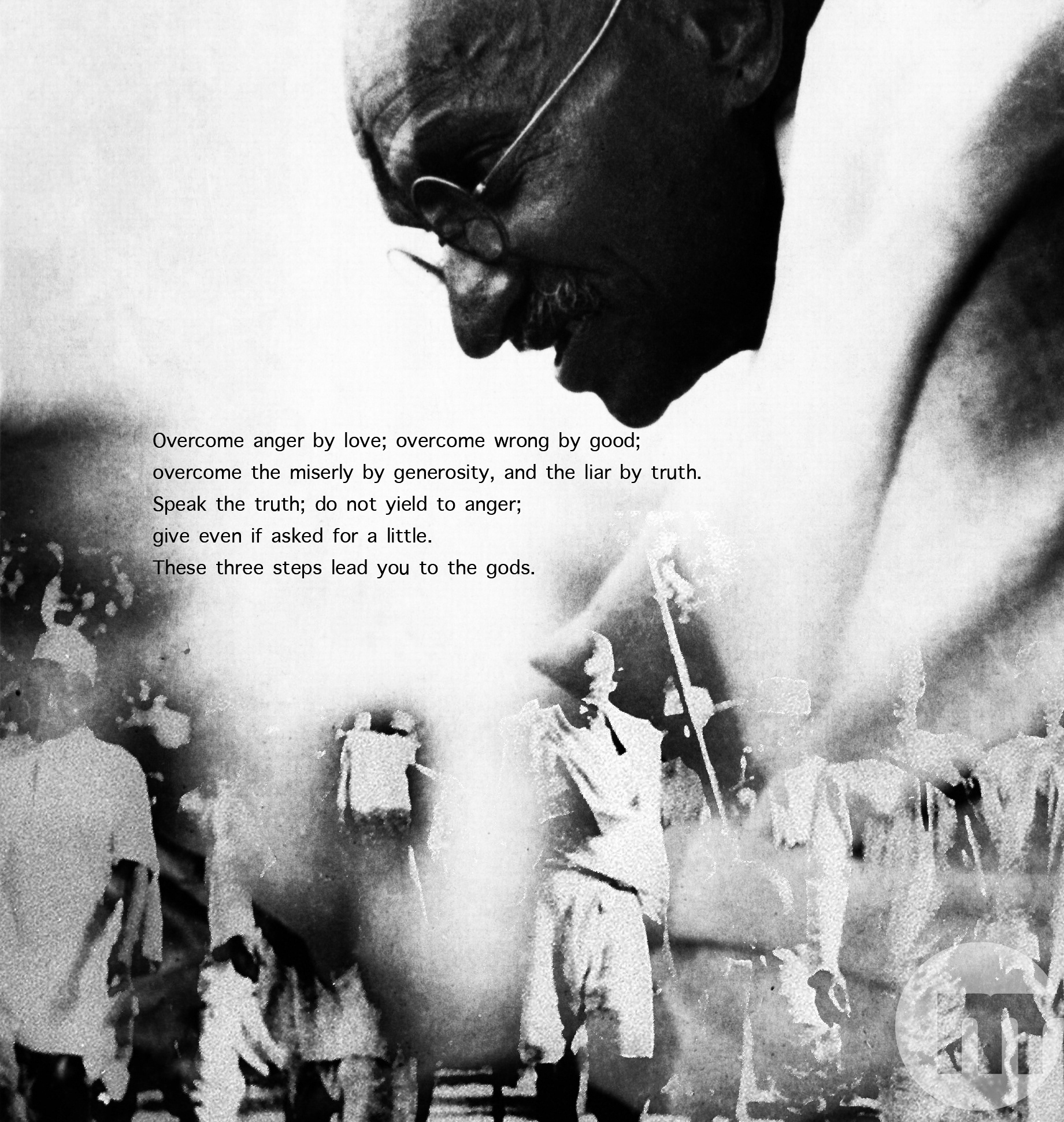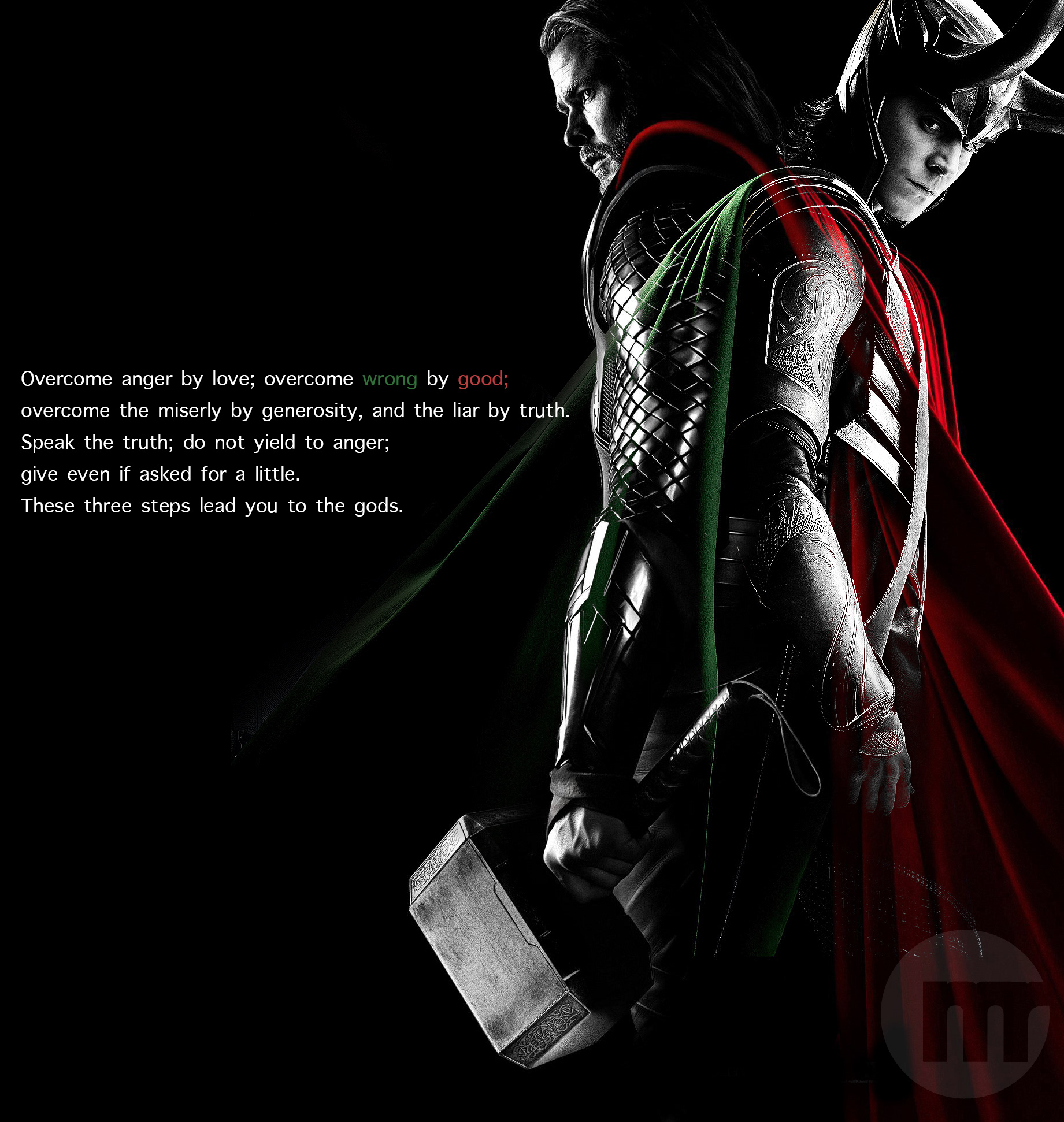 Two different interpretations of the same verse of poetry. The first on the left featuring Mahatma Gandhi and the next on the right featuring Marvel's Thor and Loki.